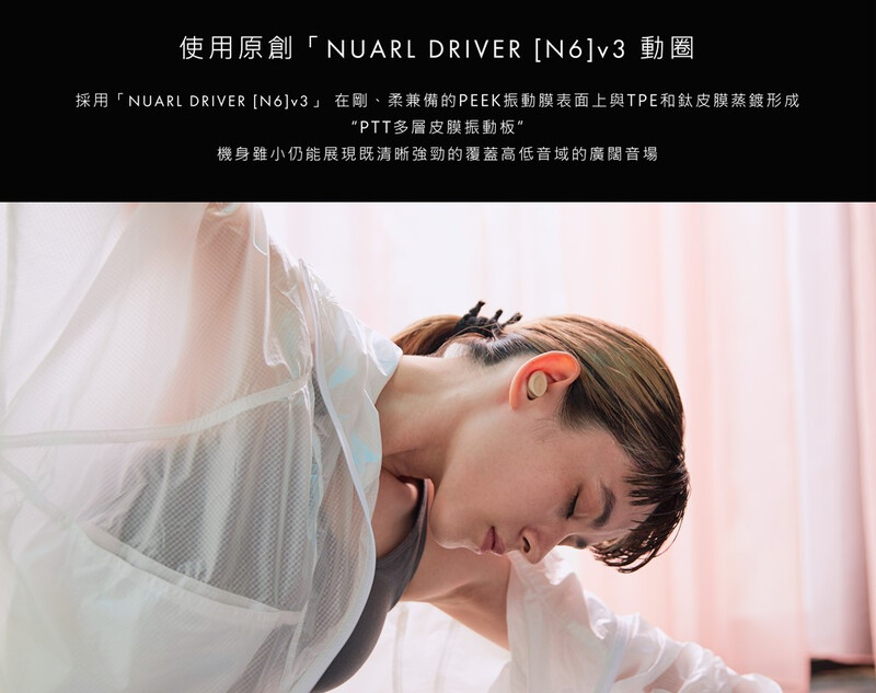 <hr style="box-sizing: inherit;">NUARL N6 mini採用了NUARL獨創的動圈式喇叭「NUARL DRIVER [N6]v3」。延續了自去年年底發布以來受到了好評的TWS N6 系列的高音質。並根據市場需求增加了IPX7防水和監聽環境音等新功能